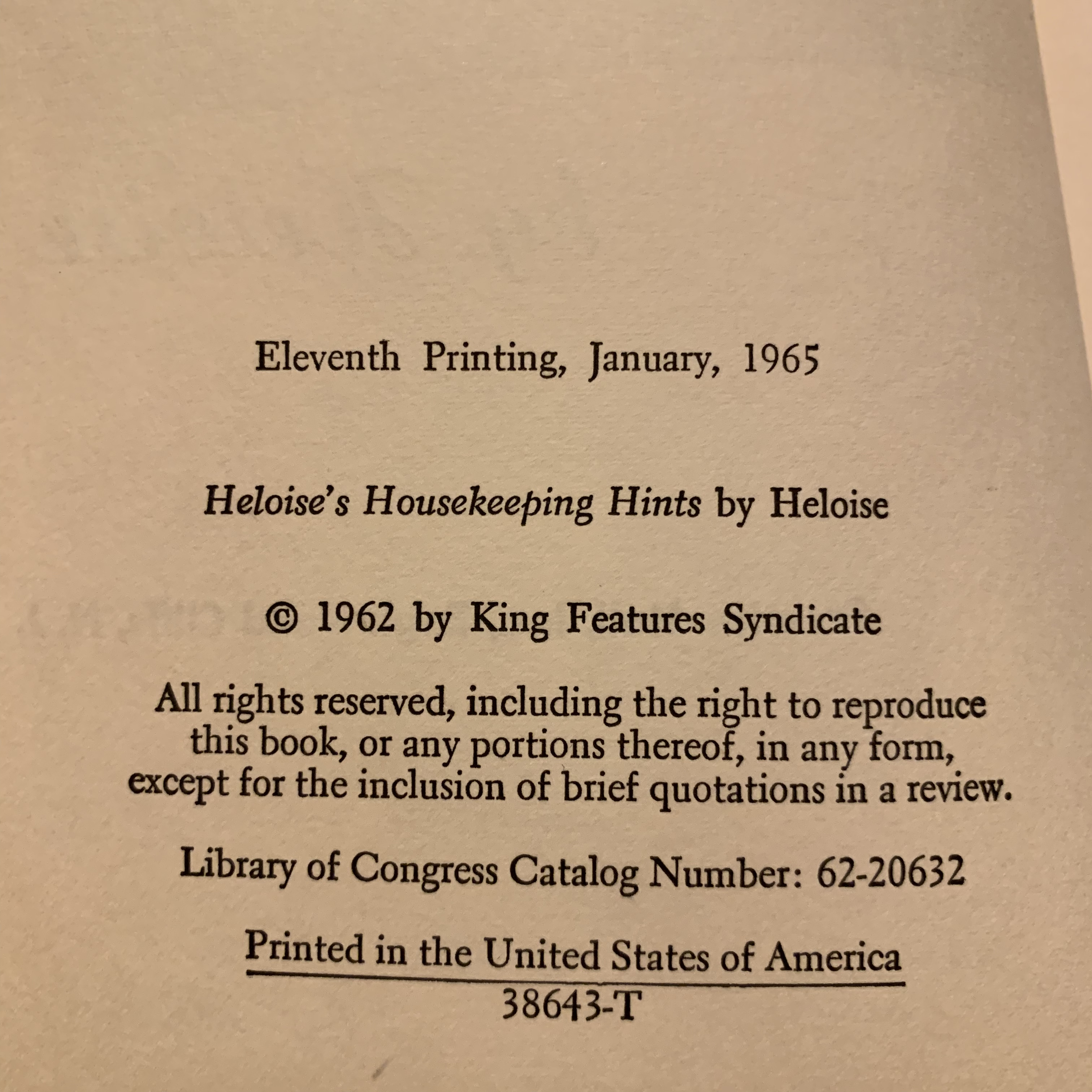 If my house was on fire this is the item I’d grab. I mean sure, kids and dog first and my husband is a grown man who can fend for himself but this is the book I’d be most heartbroken to lose. It is a 1965 printing of Heloise’s Housekeeping Hints that was given to my maternal grandmother for Christmas 1967.