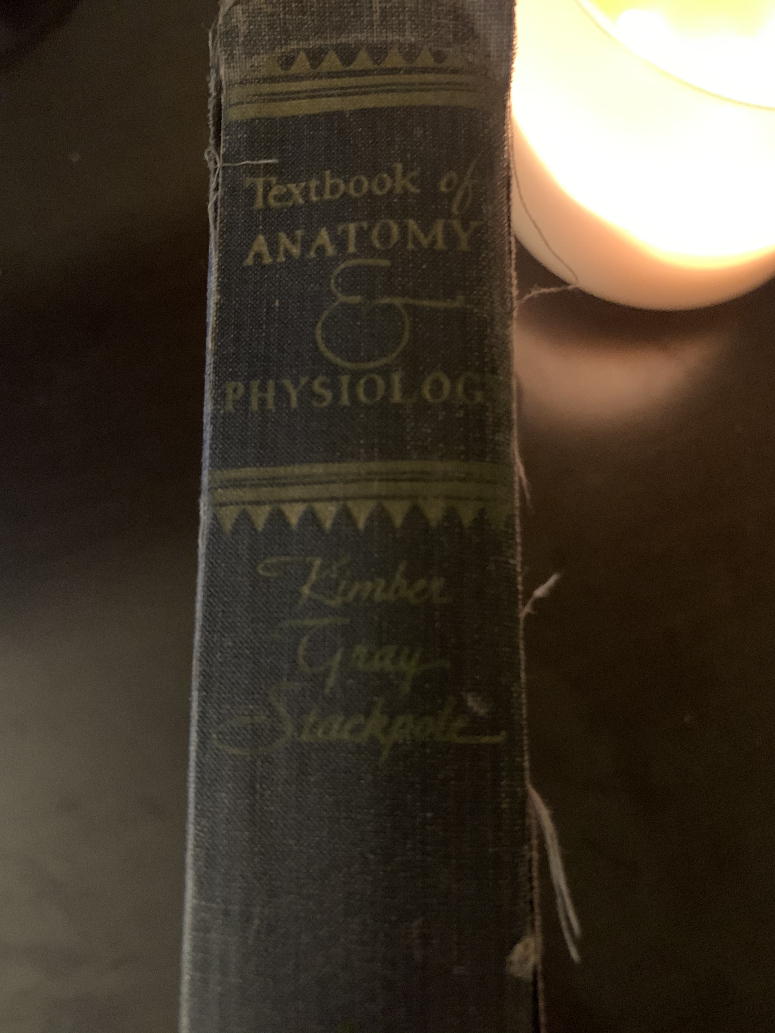As with many older text books its cover is pretty plain but the spine has some nice flourishes on it. This book belonged to my paternal grandmother Linda Avin, who was a nurse during the Korean War. She met my grandfather Lynnwood when she was treating him for wounds and they married, settled in South Carolina, and had three kids together. They were together until his death in 2004. She passed a few years later.